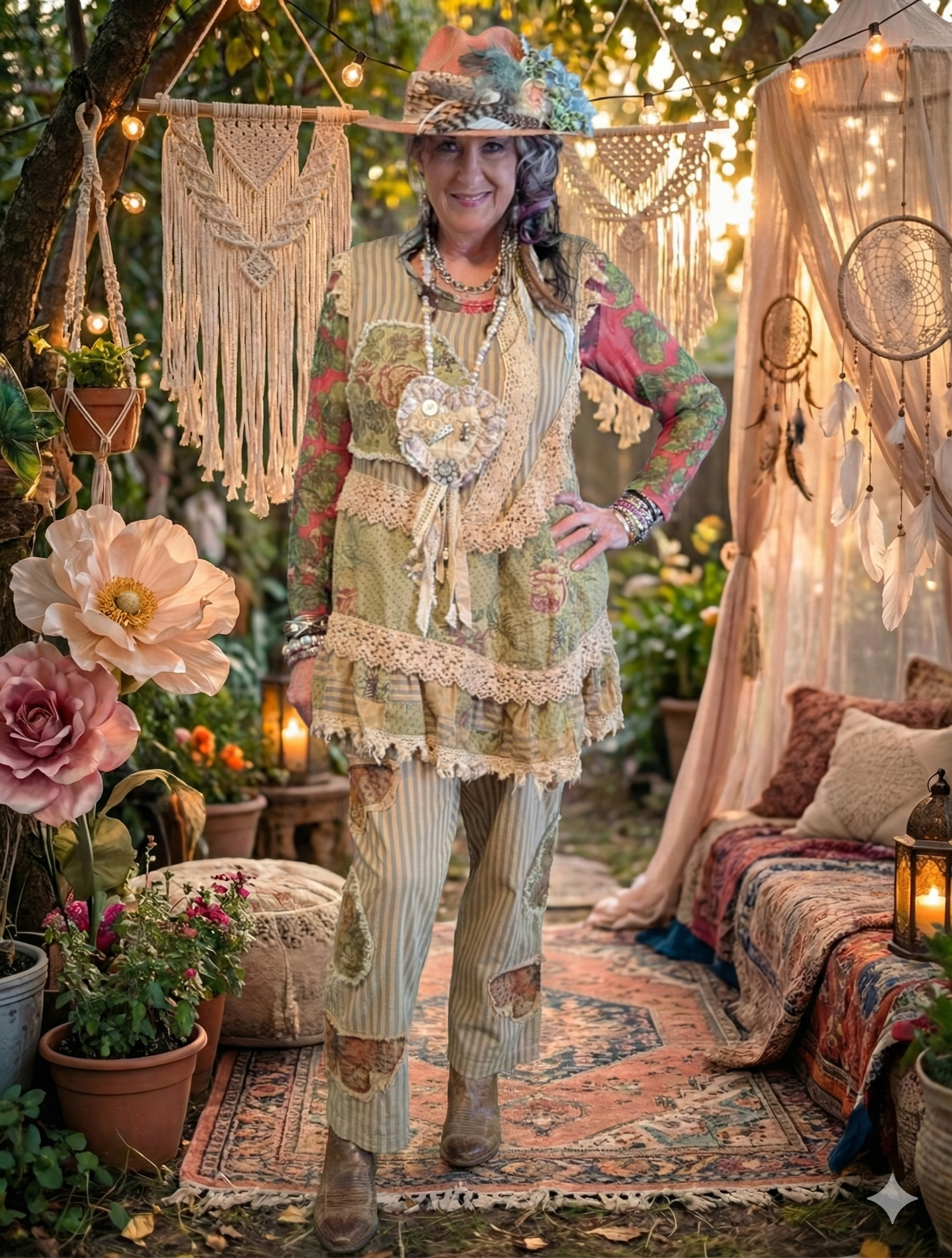 A Rare Bird butterfly Strip pant - an enchanting artisanal piece featuring whimsical butterfly-inspired detailing with unique strip design elements. These handcrafted pants showcase premium materials and exquisite craftsmanship, creating a one-of-a-kind design that captures the ethereal beauty and freedom of butterflies. Perfect for those who embrace feminine, nature-inspired boho elegance with a touch of whimsy.