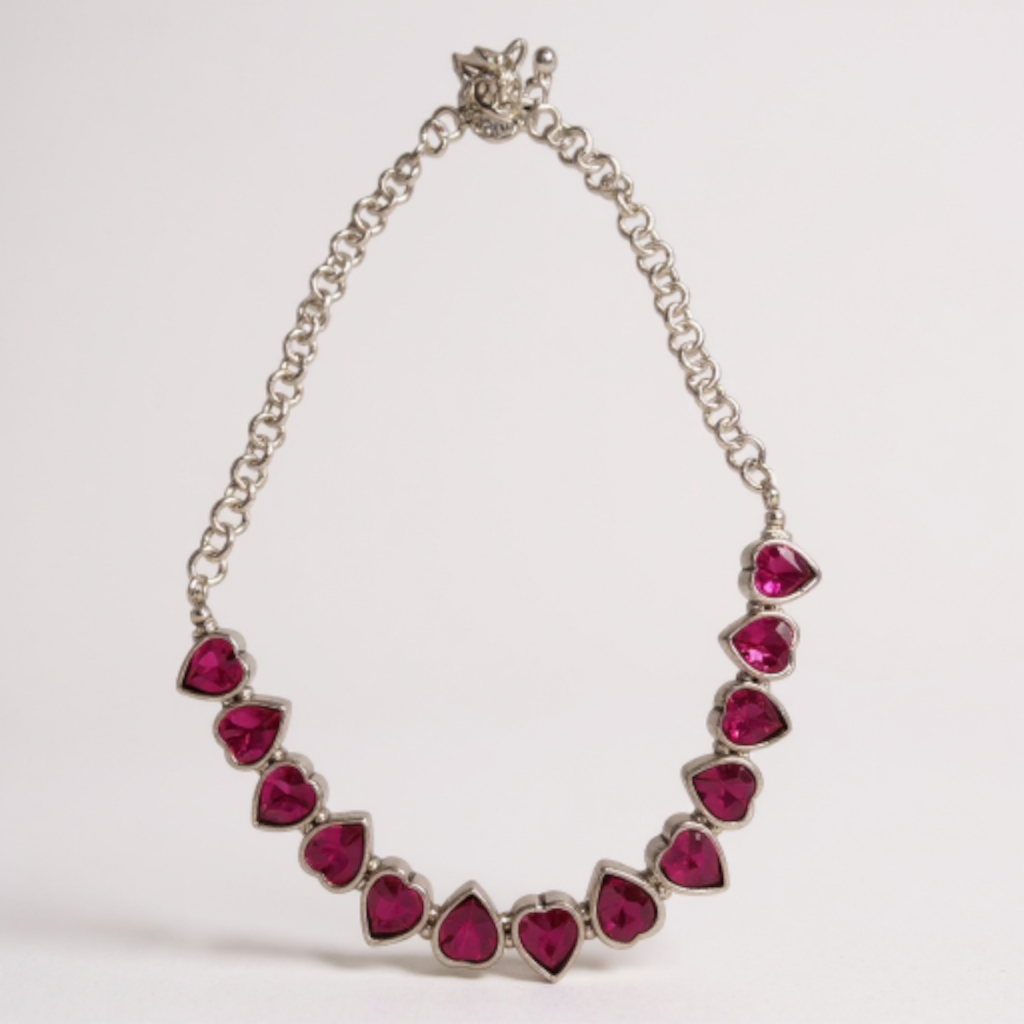 This sophisticated necklace captures light beautifully, with the precision-cut crystal hearts creating brilliant sparkle and depth. The thoughtful craftsmanship and refined aesthetic make it a versatile piece that transitions effortlessly from day to evening wear.