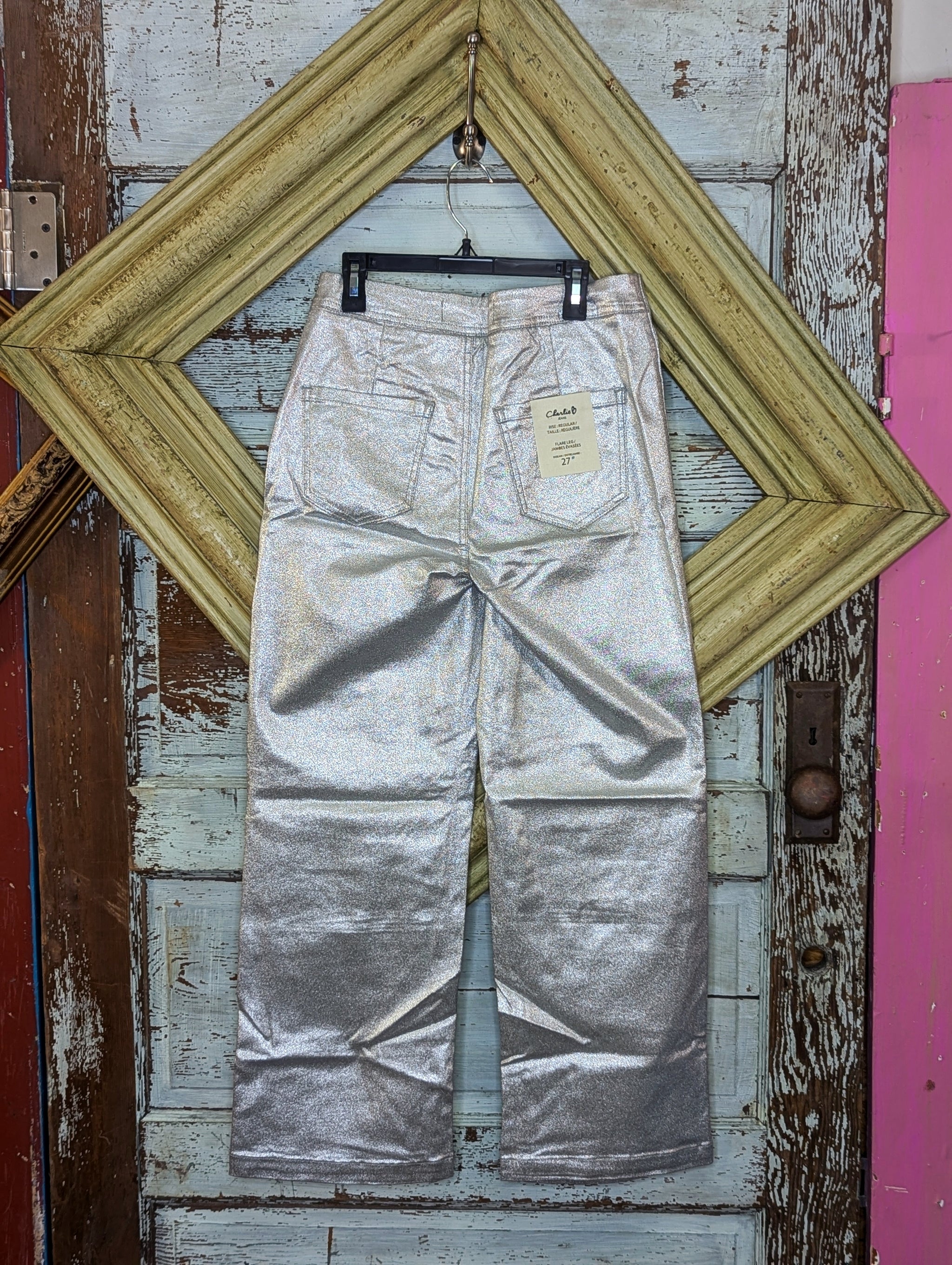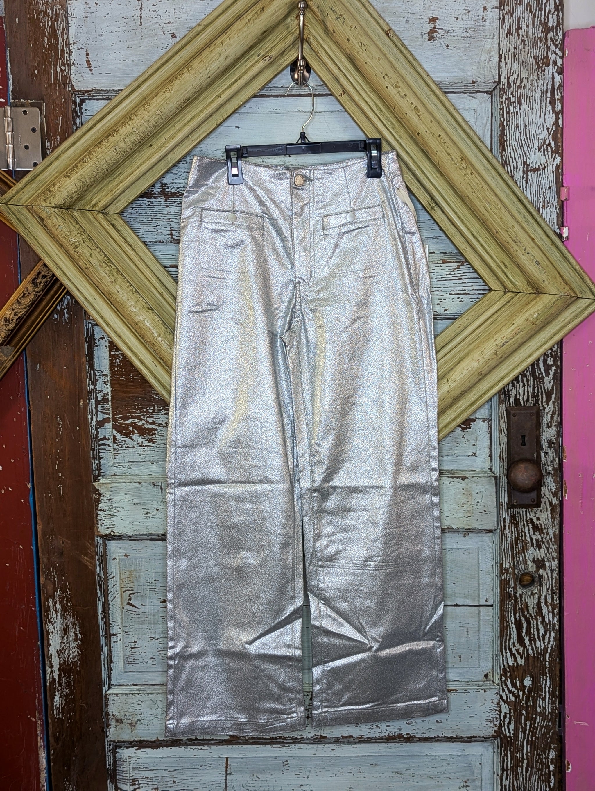 Introducing the Charlie B Silver Shimmer Twill Pull-On Pant! Made with a shimmering silver twill fabric, these pants add a touch of glamour to any outfit. The pull-on style ensures a comfortable and effortless fit. Perfect for days when you want to feel confident and stylish.