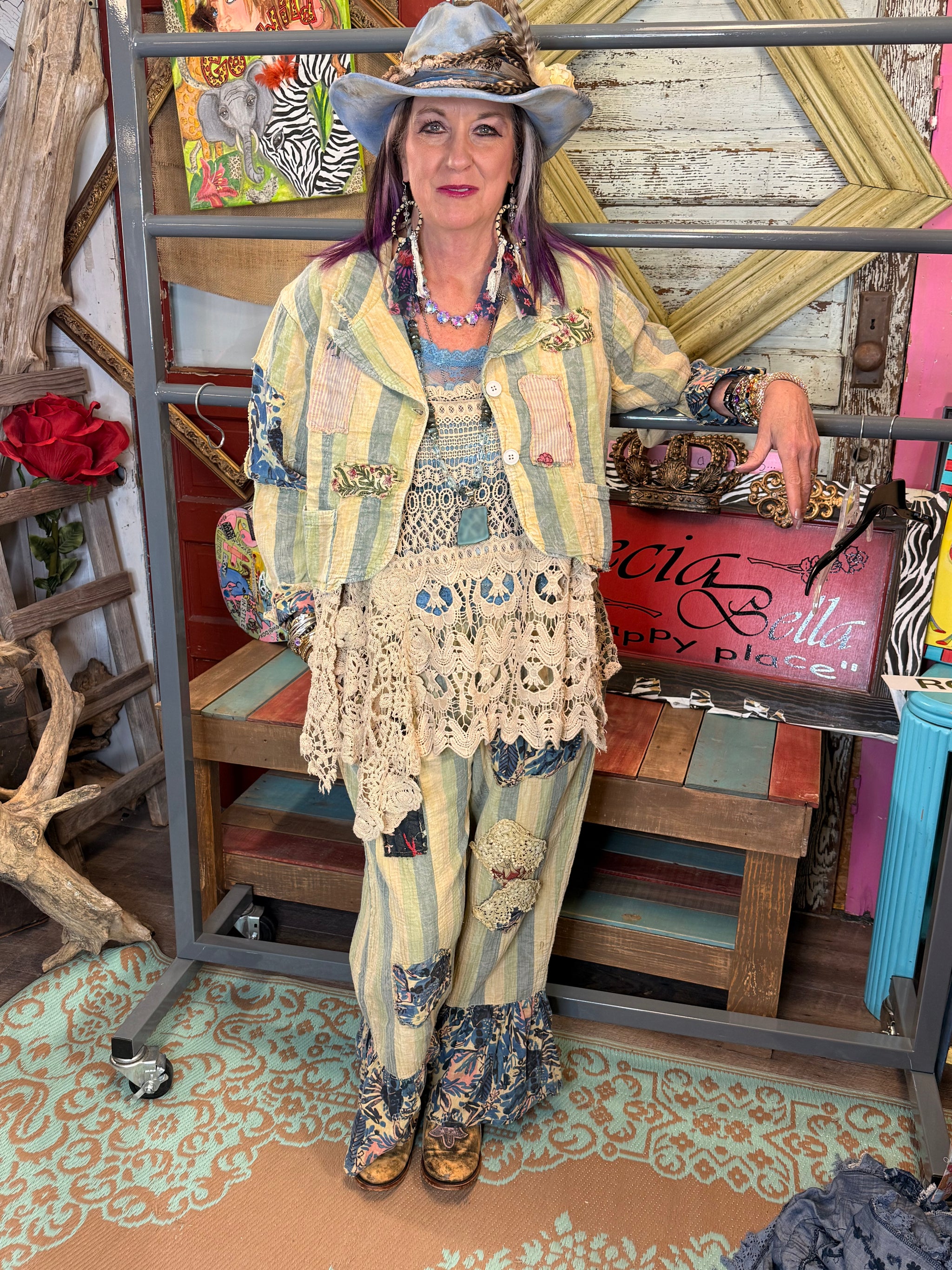 Crafted with meticulous attention to detail, these statement pants feature unique embellishments, flowing silhouettes, and the signature boho-luxe aesthetic that defines the Jaded Gypsy spirit. Perfect for festival season, creative gatherings, or adding a touch of wanderlust magic to your everyday wardrobe.