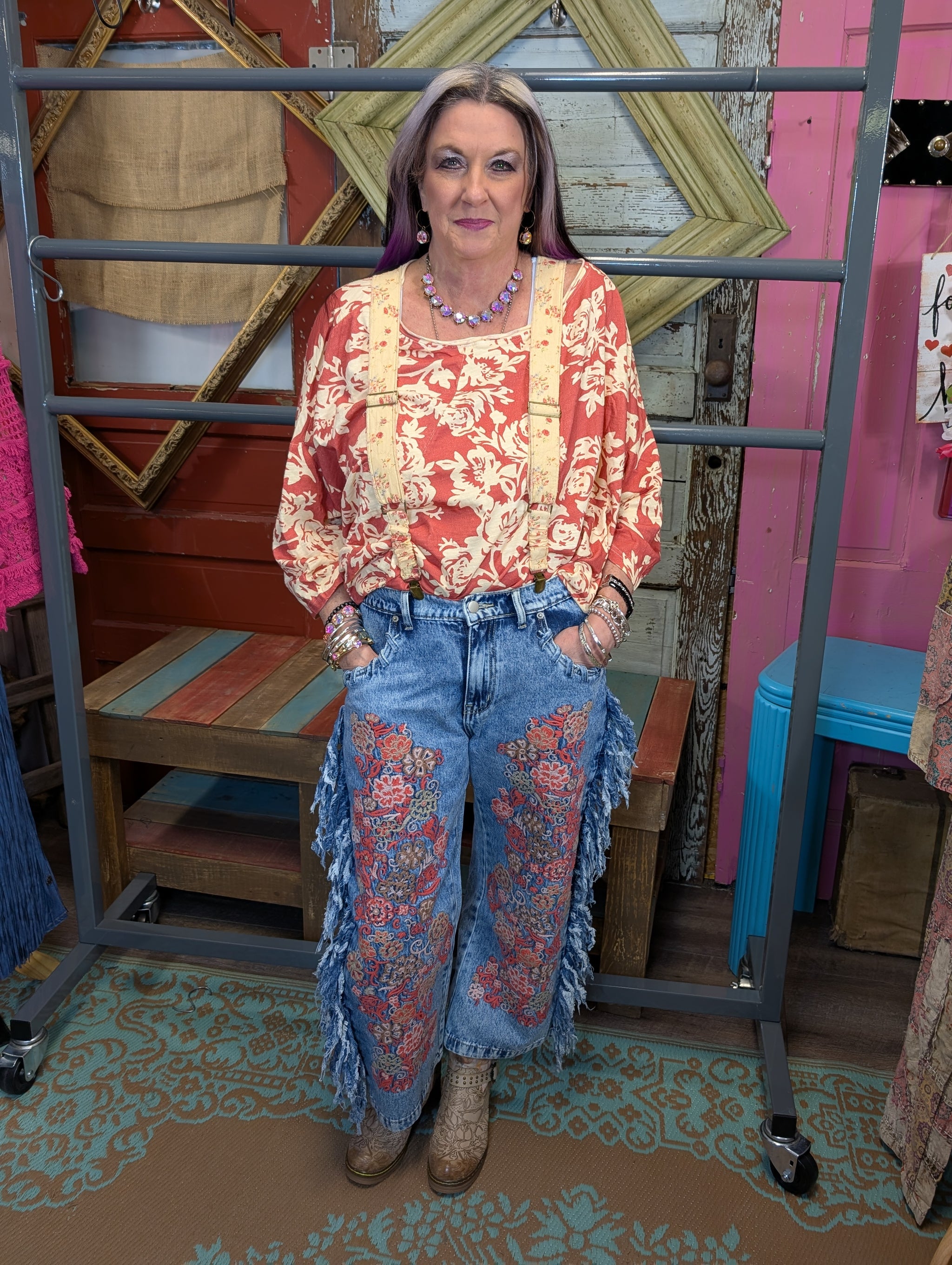 # Be Free Top – Bed of Roses Embrace effortless bohemian style with this flowy Be Free Top in our signature Bed of Roses print. Crafted for movement and comfort, this piece layers beautifully over basics or stands alone as a statement piece. The romantic floral design captures the free-spirited essence of Jaded Gypsy, while the relaxed silhouette keeps you cool and confident all day long. Perfect for those who live by their own rules.