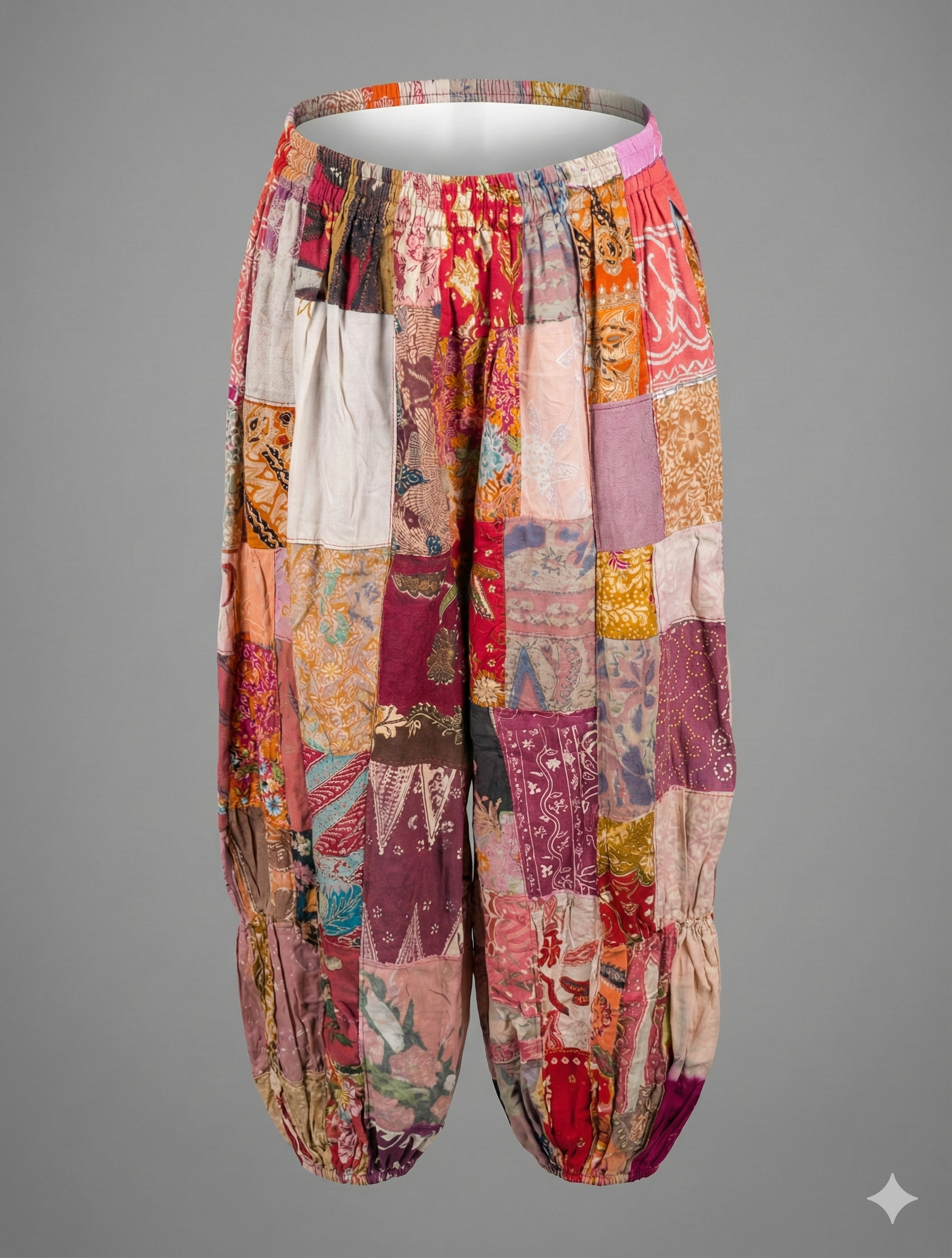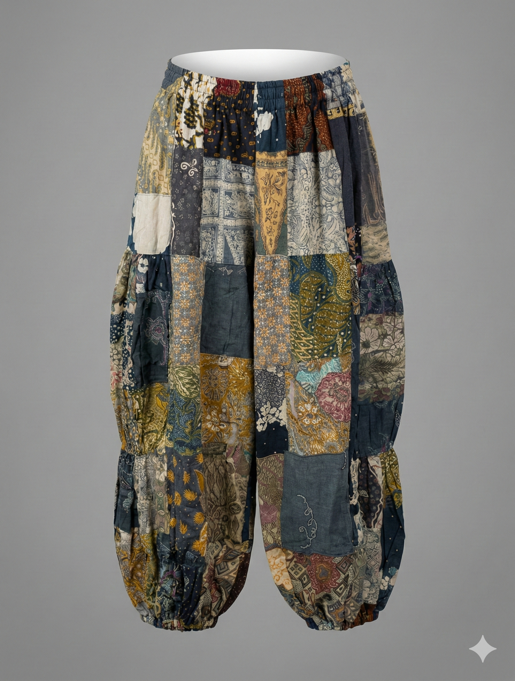 These flowing pants feature beautiful details and a comfortable fit perfect for dancing under the stars or wandering through vintage markets. The unique construction ensures that your pair is a wearable work of art.