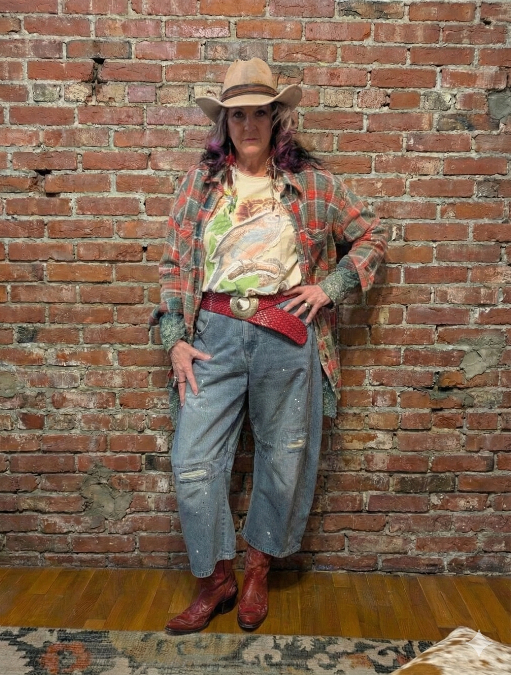 Embrace your free spirit in this enchanting Moon Dance Tee from the Willow Whispers collection. Crafted with a beautiful jade palette, this gypsy-inspired piece captures the magic of moonlit nights and carefree wandering. Perfect for layering or wearing solo, it's a versatile staple that brings bohemian charm to any wardrobe. Available in two relaxed fits to suit your style.