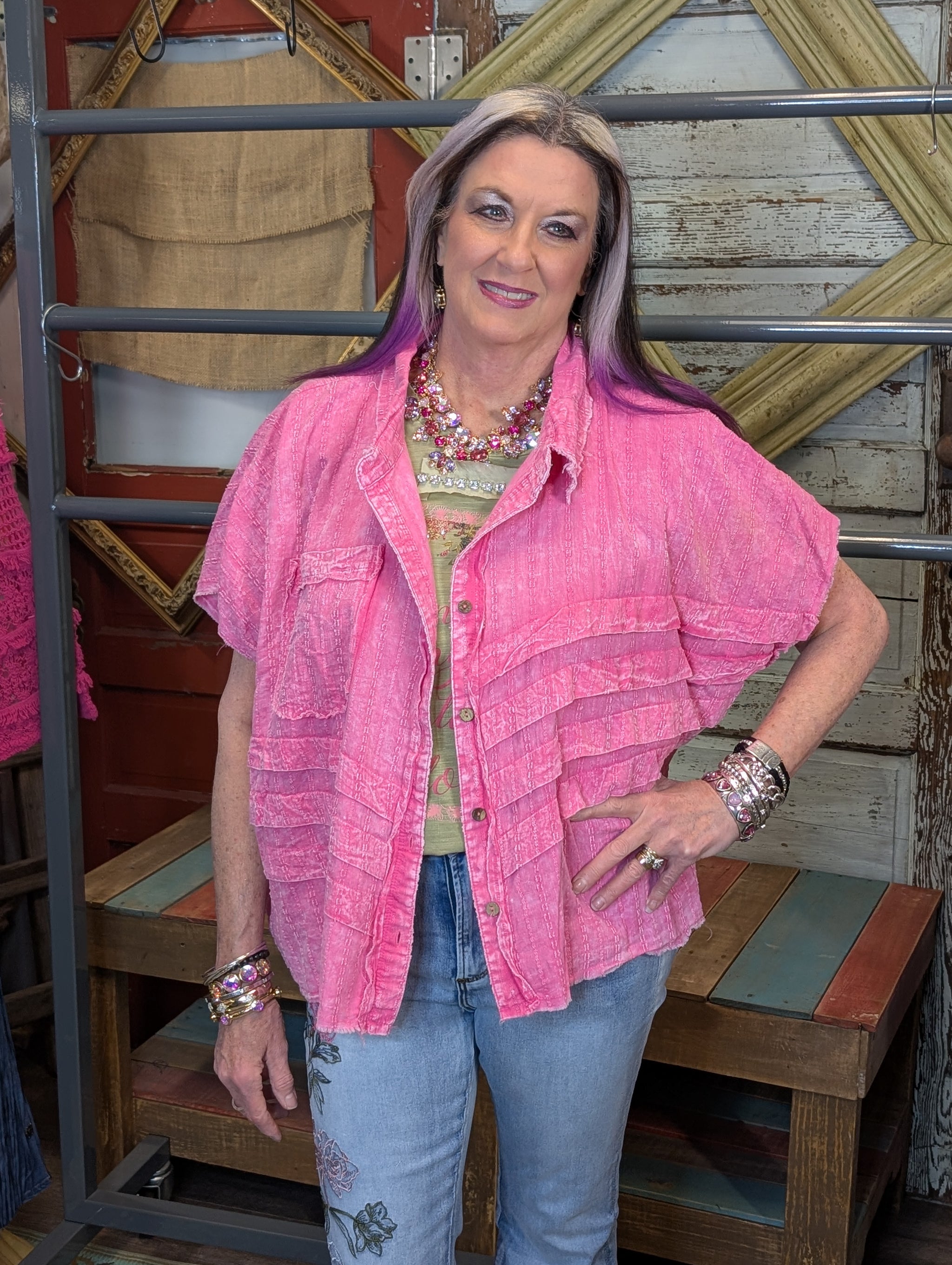 Effortless layering meets laid-back elegance with this washed button-front sleeveless shirt from Oli & Hali. The relaxed fit and soft, lived-in fabric make it perfect for throwing over a tee or wearing solo on warmer days. Versatile enough for casual weekends or dressed up with tailored pieces, this wardrobe staple pairs beautifully with everything from denim to linen trousers. A boho essential that works as hard as you do.