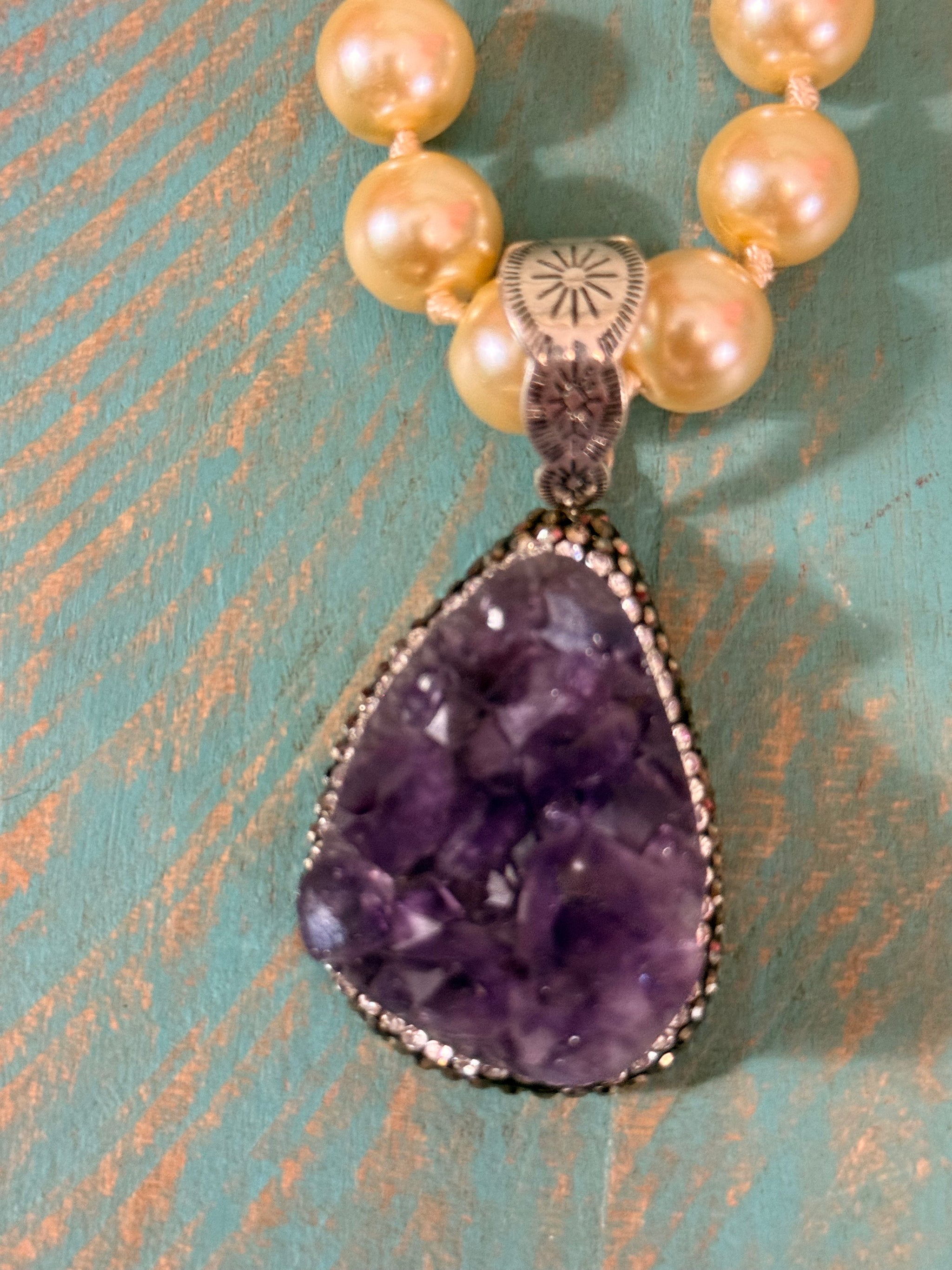 Elevate your style with the Pearl Amethyst Necklace—a dazzling blend of lustrous pearls and rich, purple amethyst stones. Perfect for adding a touch of elegance with a playful twist, this necklace balances timeless beauty and vibrant energy, making it a standout accessory for any occasion. Crafted for those who love expert craftsmanship with a fun flair.