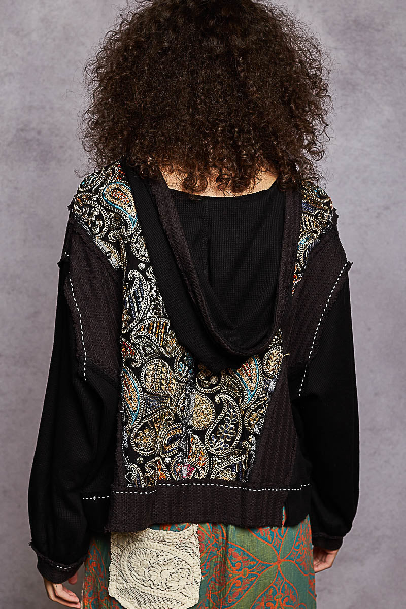 Elevate your casual wardrobe with the POL Cropped Thermal Hoodie Top. This fun piece features a flattering scoop neckline and playful balloon sleeves, enhanced by unique contrast patchwork panels and detailed stitching. Its relaxed cropped fit pairs perfectly with high-waist pants or layered over bralettes and tanks, creating an effortlessly cool boho look. The attached hood adds both practicality and a laid-back vibe, making this hoodie a stylish essential for easy layering and everyday comfort.