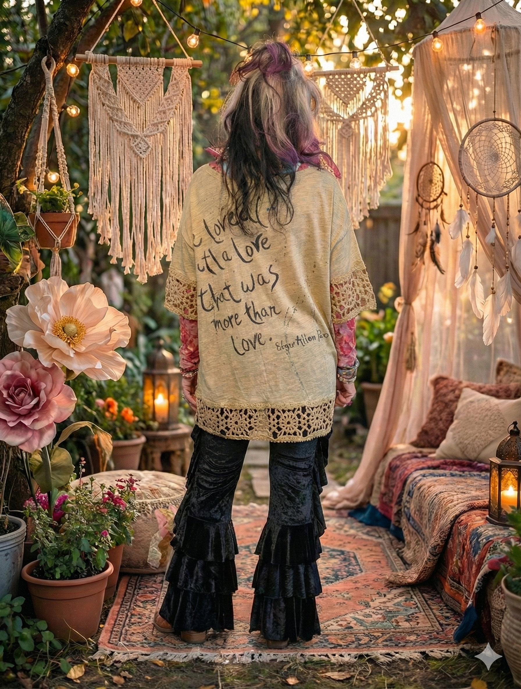Rare Bird Love Shirt - a beautiful artisanal piece that celebrates love and individuality. This handcrafted shirt features premium materials and unique boho-inspired design, perfect for expressing your authentic self. A one-of-a-kind statement piece that embodies both comfort and style.
